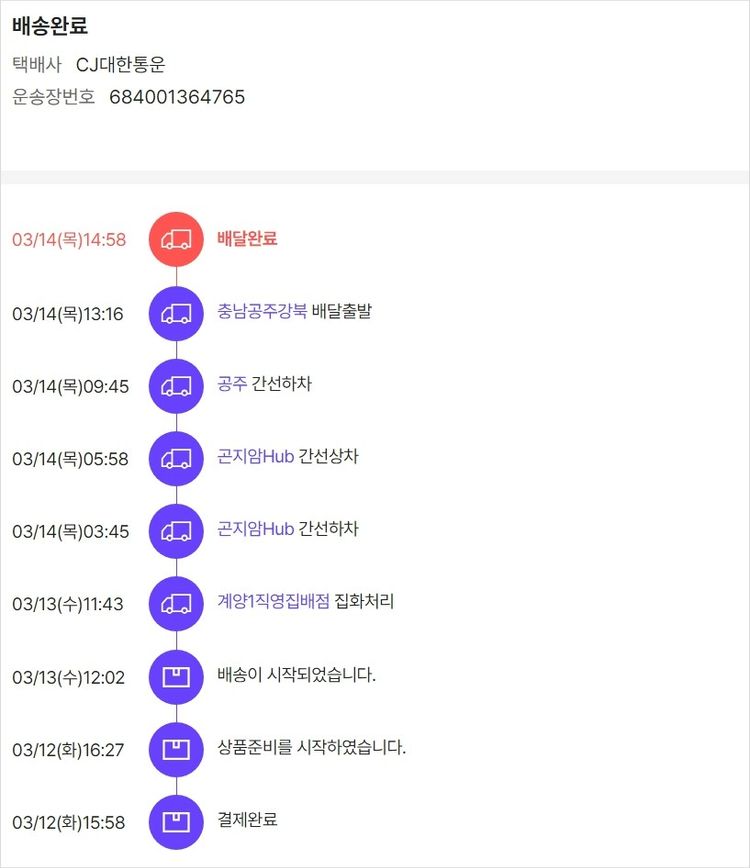 기부자님이 사용한 기부포인트 12,500원, 물품배송비 4,000원, 가격상승분 2,742원, 100원 미만 지원금 56원, 결제 수수료 13,855원, 기타 사업비는 행복나눔재단이 부담했습니다. (기부후기 발송시점에 최종 업데이트 됩니다.) 실제 쇼핑몰에서 확인되는 배송현황을 캡처한 내용입니다. 실시간 자료와는 차이가 있을 수 있습니다.