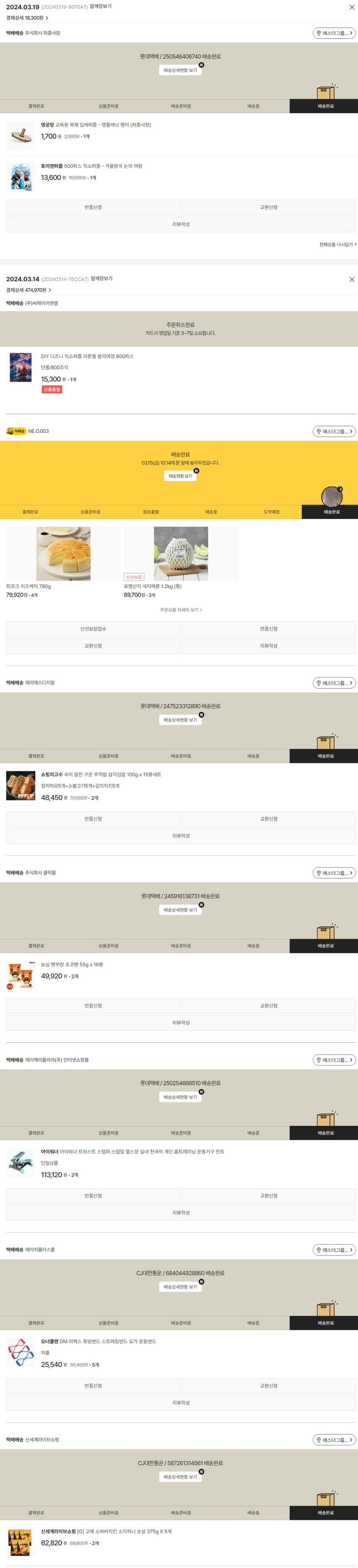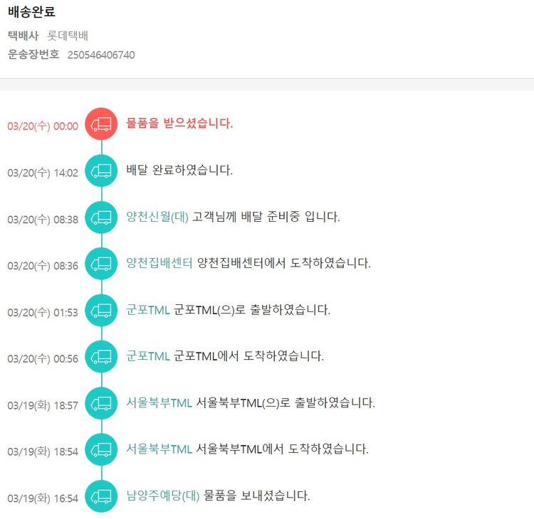 기부자님이 사용한 기부포인트 8,500원, 물품배송비 8,500원, 가격상승분 142원, 100원 미만 지원금 28원, 결제 수수료 14,326원, 기타 사업비는 행복나눔재단이 부담했습니다. (기부후기 발송시점에 최종 업데이트 됩니다.) 주문 건 중 품절 건 발생하여 2024. 03. 19. 재주문했습니다. 실제 쇼핑몰에서 확인되는 배송현황을 캡처한 내용입니다. 실시간 자료와는 차이가 있을 수 있습니다.