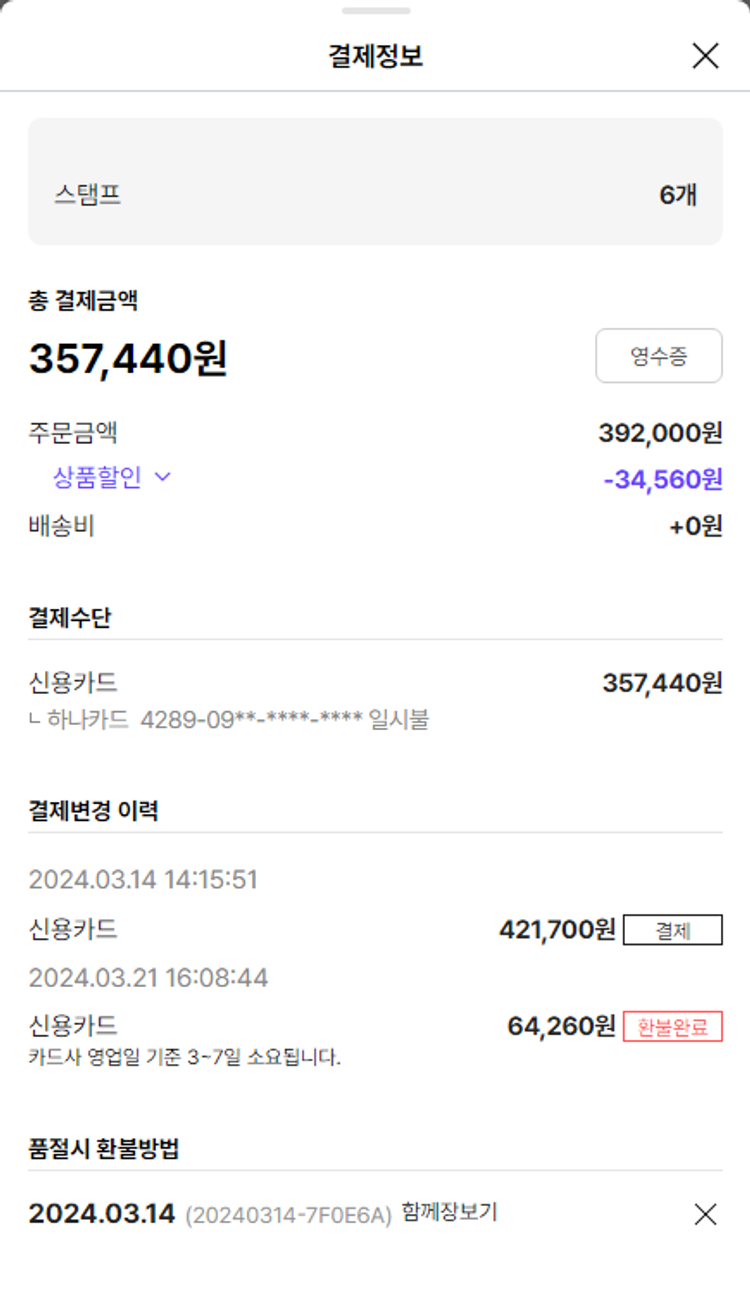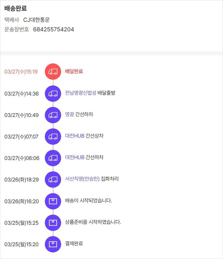 기부자님이 사용한 기부포인트 6,100원, 가격상승분 65원, 100원 미만 지원금 80원, 결제 수수료 12,290원, 기타 사업비는 행복나눔재단이 부담했습니다. (기부후기 발송시점에 최종 업데이트 됩니다.) 주문 건 중 품절 건 발생하여 2024. 03. 25. 재주문했습니다. 실제 쇼핑몰에서 확인되는 배송현황을 캡처한 내용입니다. 실시간 자료와는 차이가 있을 수 있습니다.