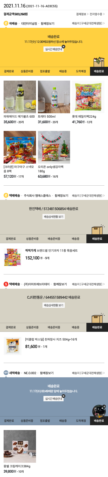 기부자님이 사용한 기부포인트 43,200원, 가격상승분 3,540원, 100원 미만 지원금 20원, 결제 수수료 12,618원, 기타 사업비는 행복나눔재단이 부담했습니다. (기부후기 발송시점에 최종 업데이트 됩니다.) 실제 쇼핑몰에서 확인되는 배송현황을 캡처한 내용입니다. 실시간 자료와는 차이가 있을 수 있습니다.