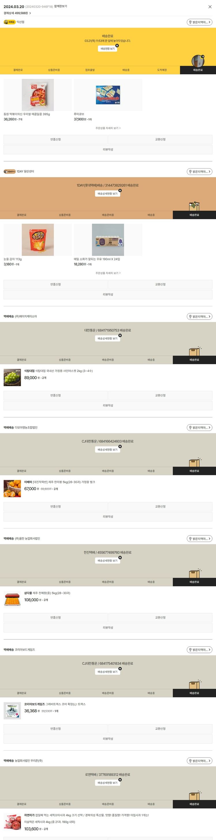 가격상승분 60원, 100원 미만 지원금 28원, 결제 수수료 11,816원, 기타 사업비는 행복나눔재단이 부담했습니다. (기부후기 발송시점에 최종 업데이트 됩니다.) 실제 쇼핑몰에서 확인되는 배송현황을 캡처한 내용입니다. 실시간 자료와는 차이가 있을 수 있습니다.