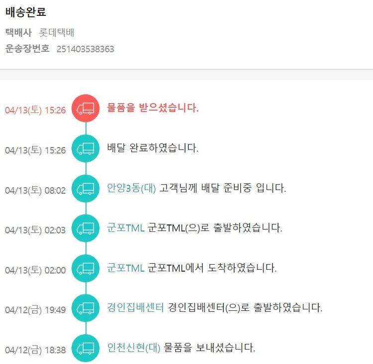 가격상승분 1,488원, 100원 미만 지원금 46원, 결제 수수료 11,276원, 기타 사업비는 행복나눔재단이 부담했습니다. (기부후기 발송시점에 최종 업데이트 됩니다.) 실제 쇼핑몰에서 확인되는 배송현황을 캡처한 내용입니다. 실시간 자료와는 차이가 있을 수 있습니다.