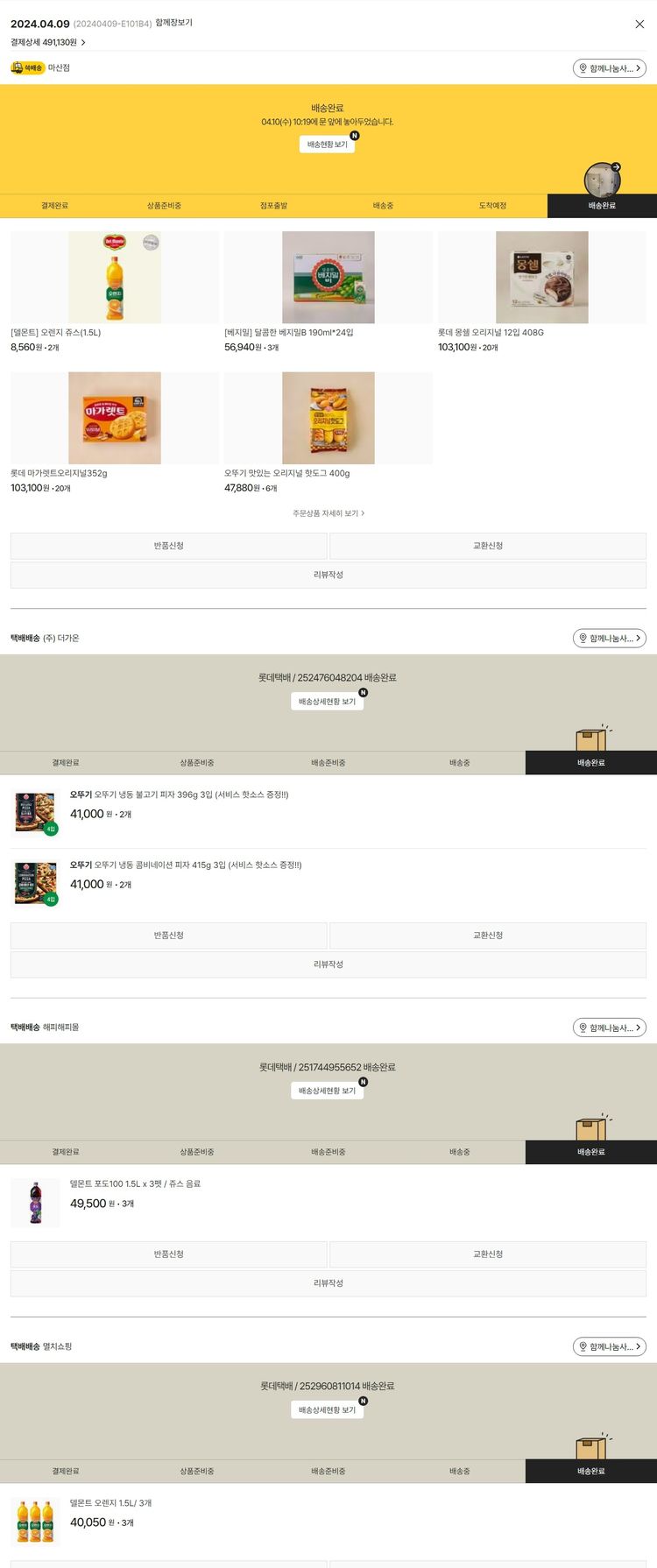 가격상승분 2,358원, 100원 미만 지원금 72원, 결제 수수료 17,202원, 기타 사업비는 행복나눔재단이 부담했습니다. (기부후기 발송시점에 최종 업데이트 됩니다.) 담아 주신 물품 품절 및 타 업체 동일 물품 구매 수량 제한으로 음료 물품 수량이 변경되어 주문되었습니다. 실제 쇼핑몰에서 확인되는 배송현황을 캡처한 내용입니다. 실시간 자료와는 차이가 있을 수 있습니다.