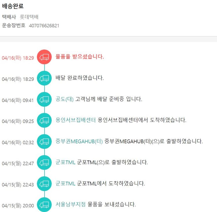 기부자님이 사용한 기부포인트 200원, 물품배송비 2,500원, 가격상승분 4,040원, 100원 미만 지원금 80원, 결제 수수료 12,711원, 기타 사업비는 행복나눔재단이 부담했습니다. (기부후기 발송시점에 최종 업데이트 됩니다.) 실제 쇼핑몰에서 확인되는 배송현황을 캡처한 내용입니다. 실시간 자료와는 차이가 있을 수 있습니다.