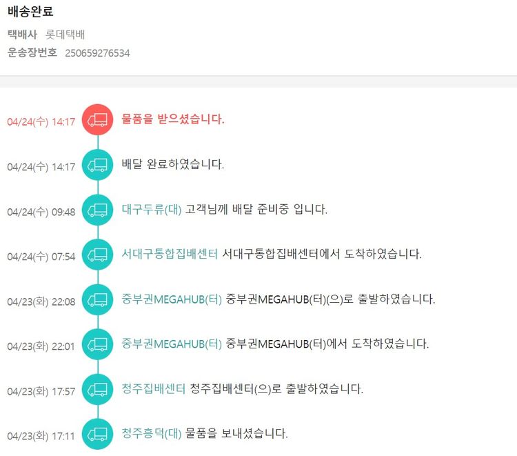 기부자님이 사용한 기부포인트 9,550원, 가격상승분 146원, 100원 미만 지원금 20원, 결제 수수료 11,798원, 기타 사업비는 행복나눔재단이 부담했습니다. (기부후기 발송시점에 최종 업데이트 됩니다.) 실제 쇼핑몰에서 확인되는 배송현황을 캡처한 내용입니다. 실시간 자료와는 차이가 있을 수 있습니다.