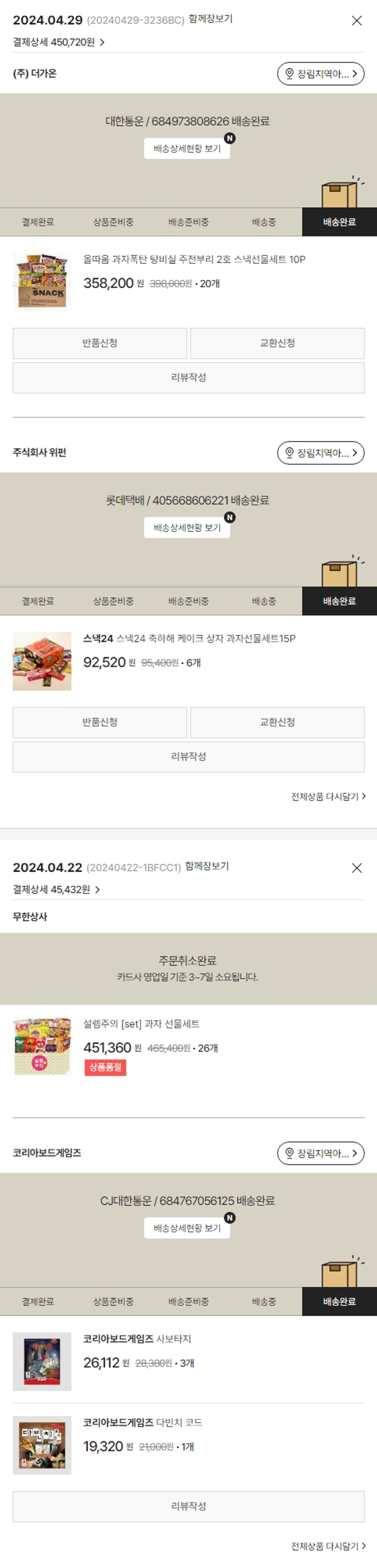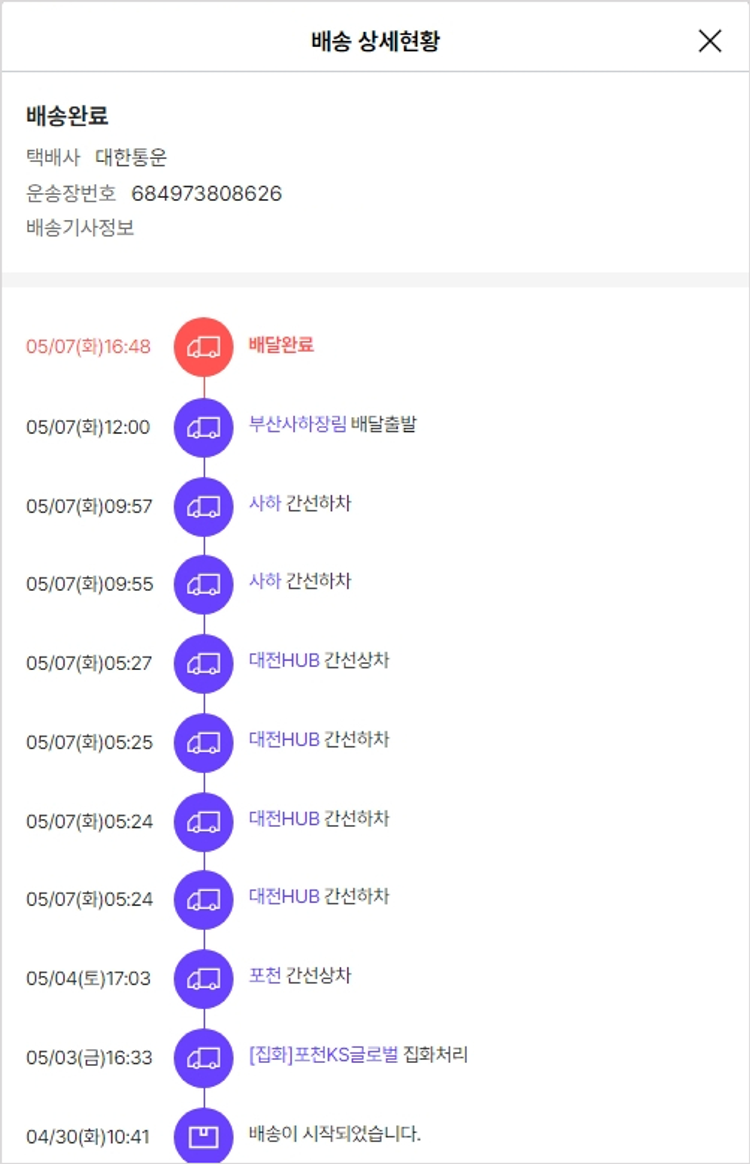 기부자님이 사용한 기부포인트 5,000원, 가격상승분 3,680원, 100원 미만 지원금 72원, 결제 수수료 11,843원, 기타 사업비는 행복나눔재단이 부담했습니다. (기부후기 발송시점에 최종 업데이트 됩니다.) 주문 건 중 품절 건 발생하여 2024. 04. 29. 재주문했습니다. 실제 쇼핑몰에서 확인되는 배송현황을 캡처한 내용입니다. 실시간 자료와는 차이가 있을 수 있습니다.