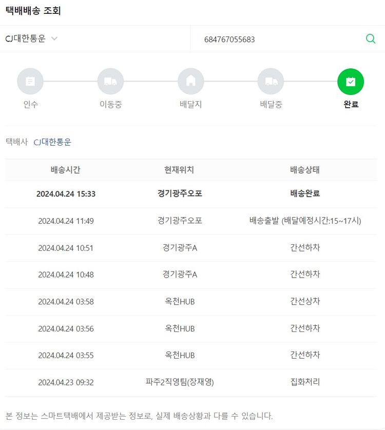 기부자님이 사용한 기부포인트 3,700원, 가격상승분 13,928원, 100원 미만 지원금 81원, 결제 수수료 11,120원, 기타 사업비는 행복나눔재단이 부담했습니다. (기부후기 발송시점에 최종 업데이트 됩니다.) 실제 쇼핑몰에서 확인되는 배송현황을 캡처한 내용입니다. 실시간 자료와는 차이가 있을 수 있습니다.