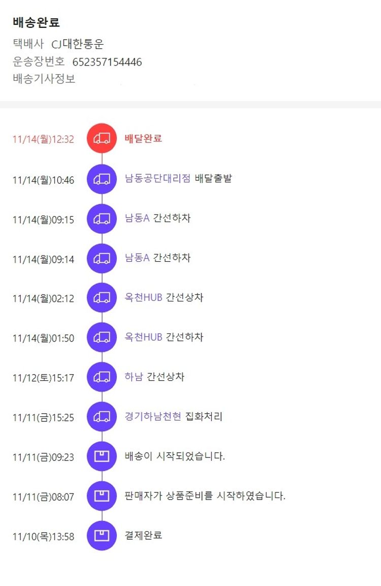 기부자님이 사용한 기부포인트 6,100원, 물품배송비 10,000원, 가격상승분 3,368원, 100원 미만 지원금 54원, 결제 수수료 12,094원, 기타 사업비는 행복나눔재단이 부담했습니다. (기부후기 발송시점에 최종 업데이트 됩니다.) 실제 쇼핑몰에서 확인되는 배송현황을 캡처한 내용입니다. 실시간 자료와는 차이가 있을 수 있습니다.