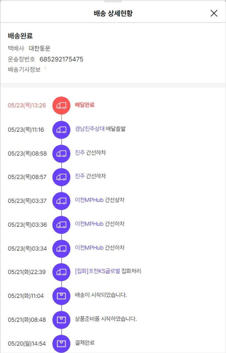 가격상승분 12,520원, 100원 미만 지원금 20원, 결제 수수료 10,794원, 기타 사업비는 행복나눔재단이 부담했습니다. (기부후기 발송시점에 최종 업데이트 됩니다.) 실제 쇼핑몰에서 확인되는 배송현황을 캡처한 내용입니다. 실시간 자료와는 차이가 있을 수 있습니다.