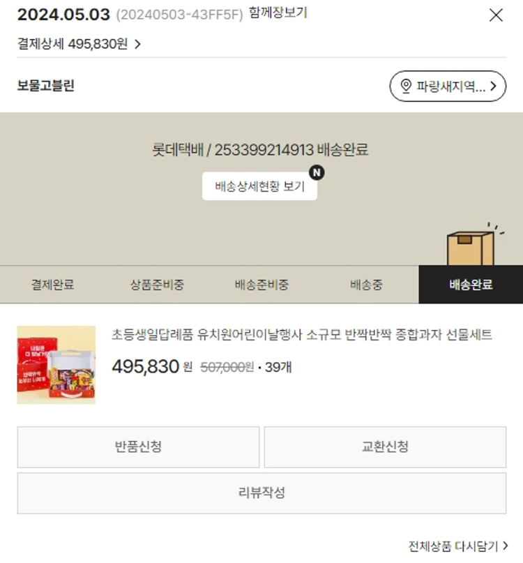 기부자님이 사용한 기부포인트 6,000원, 가격상승분 4,040원, 100원 미만 지원금 90원, 결제 수수료 17,096원, 기타 사업비는 행복나눔재단이 부담했습니다. (기부후기 발송시점에 최종 업데이트 됩니다.) 실제 쇼핑몰에서 확인되는 배송현황을 캡처한 내용입니다. 실시간 자료와는 차이가 있을 수 있습니다.