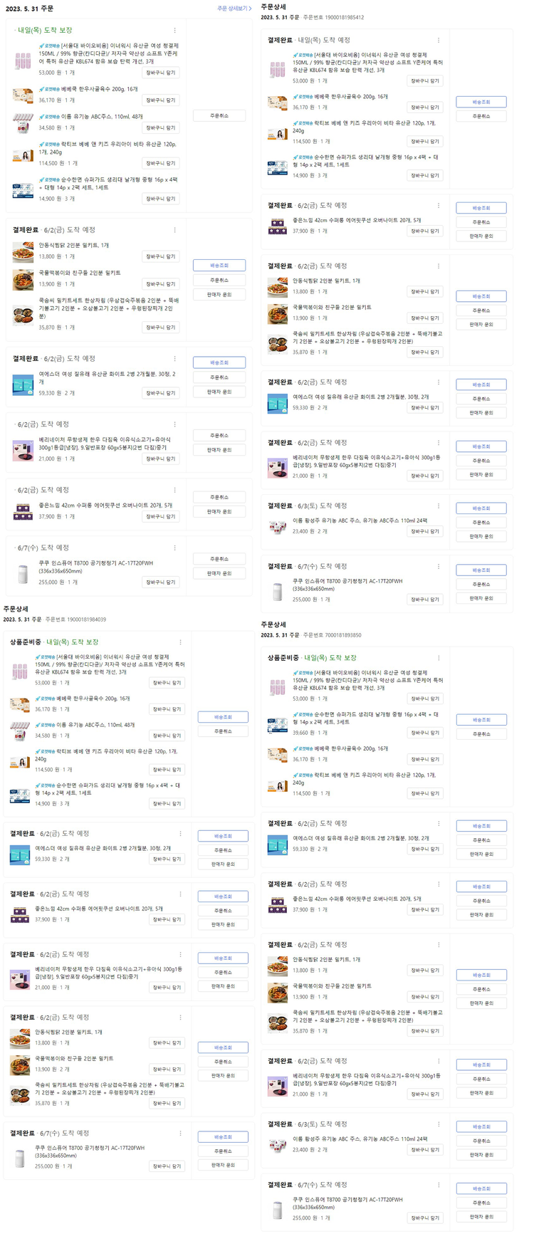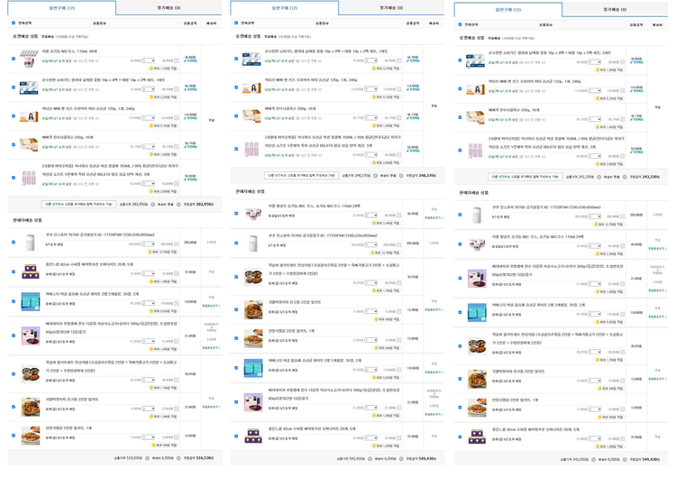 각 장바구니 별 결제 내역과 실제 장바구니 이미지는 아래 링크를 통해 확인하실 수 있습니다.