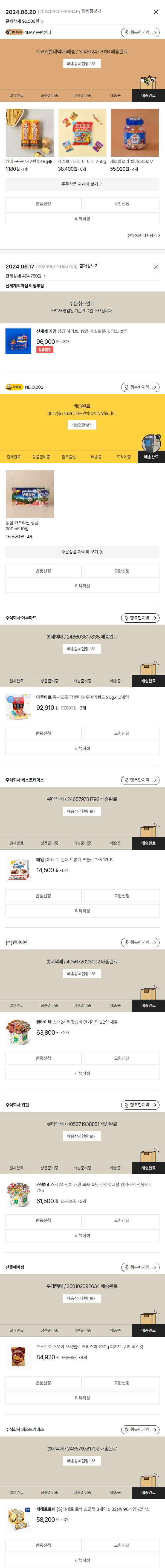 기부자님이 사용한 기부포인트 16,000원, 물품배송비 9,000원, 100원 미만 지원금 50원, 결제 수수료 11,876원, 기타 사업비는 행복나눔재단이 부담했습니다. (기부후기 발송시점에 최종 업데이트 됩니다.) 주문 건 중 품절 건 발생하여 2024. 06. 20. 재주문했습니다. 실제 쇼핑몰에서 확인되는 배송현황을 캡처한 내용입니다. 실시간 자료와는 차이가 있을 수 있습니다.