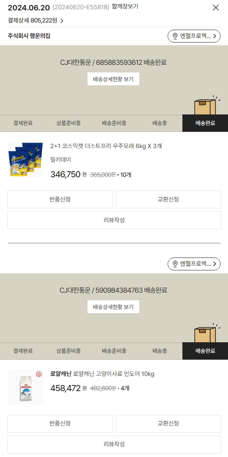 기부자님이 사용한 기부포인트 6,000원, 가격상승분 5,222원, 결제 수수료 16,644원, 기타 사업비는 행복나눔재단이 부담했습니다. (기부후기 발송시점에 최종 업데이트 됩니다.) 실제 쇼핑몰에서 확인되는 배송현황을 캡처한 내용입니다. 실시간 자료와는 차이가 있을 수 있습니다.