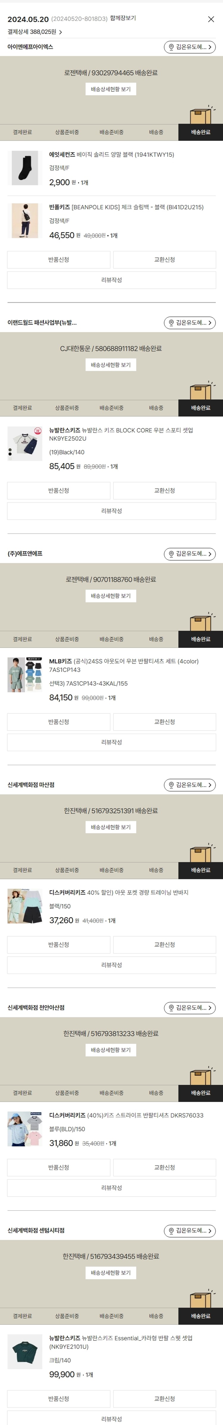 기부자님이 사용한 기부포인트 2,600원, 가격상승분 1,131원, 100원 미만 지원금 94원, 결제 수수료 8,249원, 기타 사업비는 행복나눔재단이 부담했습니다. (기부후기 발송시점에 최종 업데이트 됩니다.) ※ 신발류 품절되었으나 보육원에서 별도 구매한 상태로, 담당 선생님과 논의 후 의류로 변경하여 진행했습니다. 실제 쇼핑몰에서 확인되는 배송현황을 캡처한 내용입니다. 실시간 자료와는 차이가 있을 수 있습니다.