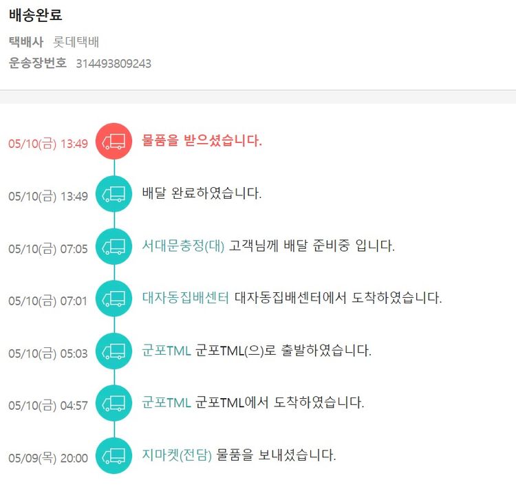 가격상승분 3,184원, 100원 미만 지원금 43원, 결제 수수료 13,467원, 기타 사업비는 행복나눔재단이 부담했습니다. (기부후기 발송시점에 최종 업데이트 됩니다.) 실제 쇼핑몰에서 확인되는 배송현황을 캡처한 내용입니다. 실시간 자료와는 차이가 있을 수 있습니다.