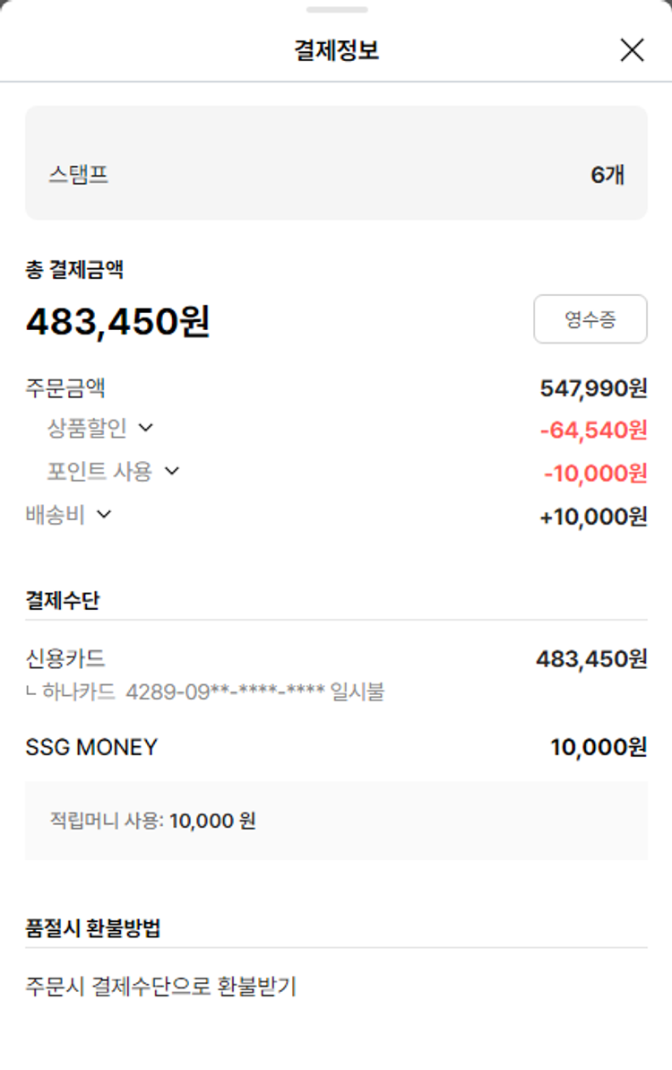 가격상승분 -9,250원, 100원 미만 지원금 10,000원, 결제 수수료 9,026원, 기타 사업비는 행복나눔재단이 부담했습니다. (기부후기 발송시점에 최종 업데이트 됩니다.) 실제 쇼핑몰에서 확인되는 배송현황을 캡처한 내용입니다. 실시간 자료와는 차이가 있을 수 있습니다.