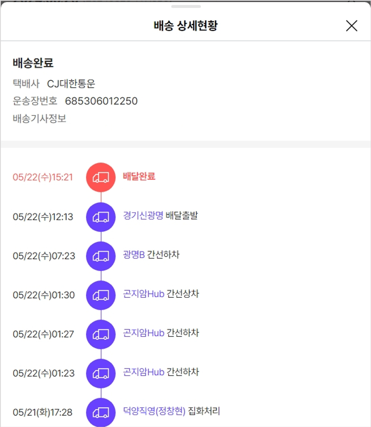 기부자님이 사용한 기부포인트 19,200원, 물품배송비 16,500원, 100원 미만 지원금 80원, 결제 수수료 9,503원, 기타 사업비는 행복나눔재단이 부담했습니다. (기부후기 발송시점에 최종 업데이트 됩니다.) 실제 쇼핑몰에서 확인되는 배송현황을 캡처한 내용입니다. 실시간 자료와는 차이가 있을 수 있습니다.