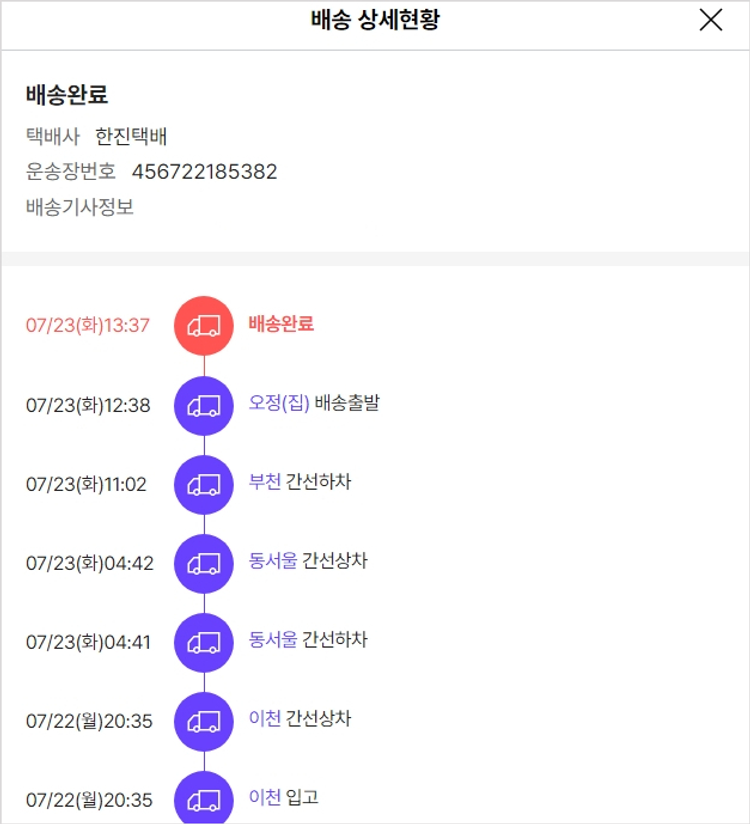 물품배송비 11,500원, 가격상승분 76원, 100원 미만 지원금 78원, 결제 수수료 11,173원, 기타 사업비는 행복나눔재단이 부담했습니다. (기부후기 발송시점에 최종 업데이트 됩니다.) 주문 건 중 품절 건 발생하여 2024. 07. 16. 재주문했습니다. 실제 쇼핑몰에서 확인되는 배송현황을 캡처한 내용입니다. 실시간 자료와는 차이가 있을 수 있습니다.