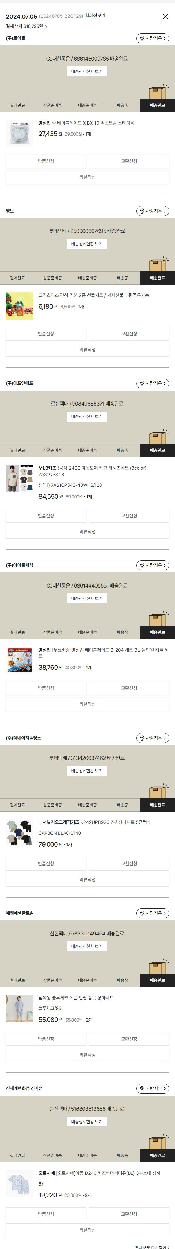 기부자님이 사용한 기부포인트 2,550원, 물품배송비 6,500원, 가격상승분 50원, 100원 미만 지원금 75원, 결제 수수료 7,648원, 기타 사업비는 행복나눔재단이 부담했습니다. (기부후기 발송시점에 최종 업데이트 됩니다.) 실제 쇼핑몰에서 확인되는 배송현황을 캡처한 내용입니다. 실시간 자료와는 차이가 있을 수 있습니다.