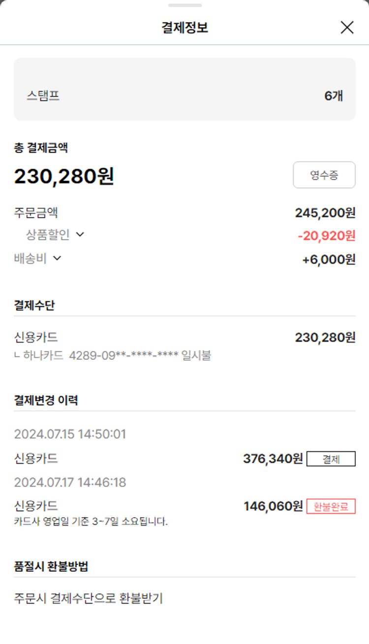 기부자님이 사용한 기부포인트 5,500원, 물품배송비 6,000원, 가격상승분 3,440원, 100원 미만 지원금 40원, 결제 수수료 7,251원, 기타 사업비는 행복나눔재단이 부담했습니다. (기부후기 발송시점에 최종 업데이트 됩니다.) 주문 건 중 품절 건 발생하여 2024.07.19 재주문했습니다. 실제 쇼핑몰에서 확인되는 배송현황을 캡처한 내용입니다. 실시간 자료와는 차이가 있을 수 있습니다.