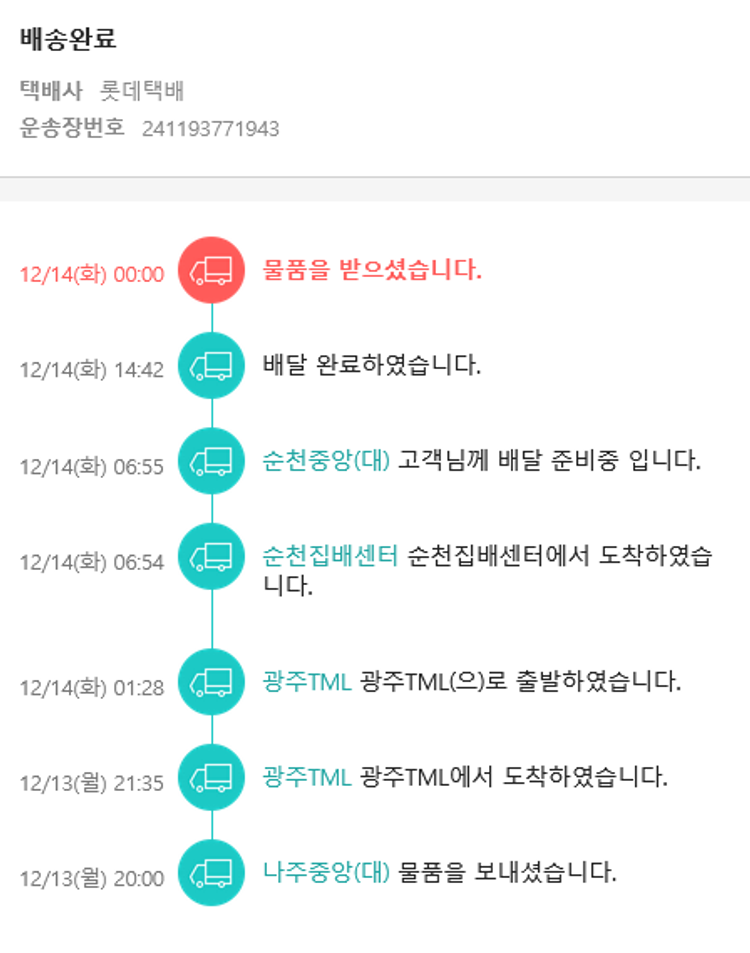 기부자님이 사용한 기부포인트 36,500원, 물품배송비 2,500원, 가격상승분 4,040원, 100원 미만 지원금 20원, 결제 수수료 12,798원, 기타 사업비는 행복나눔재단이 부담했습니다. (기부후기 발송시점에 최종 업데이트 됩니다.) 실제 쇼핑몰에서 확인되는 배송현황을 캡처한 내용입니다. 실시간 자료와는 차이가 있을 수 있습니다.