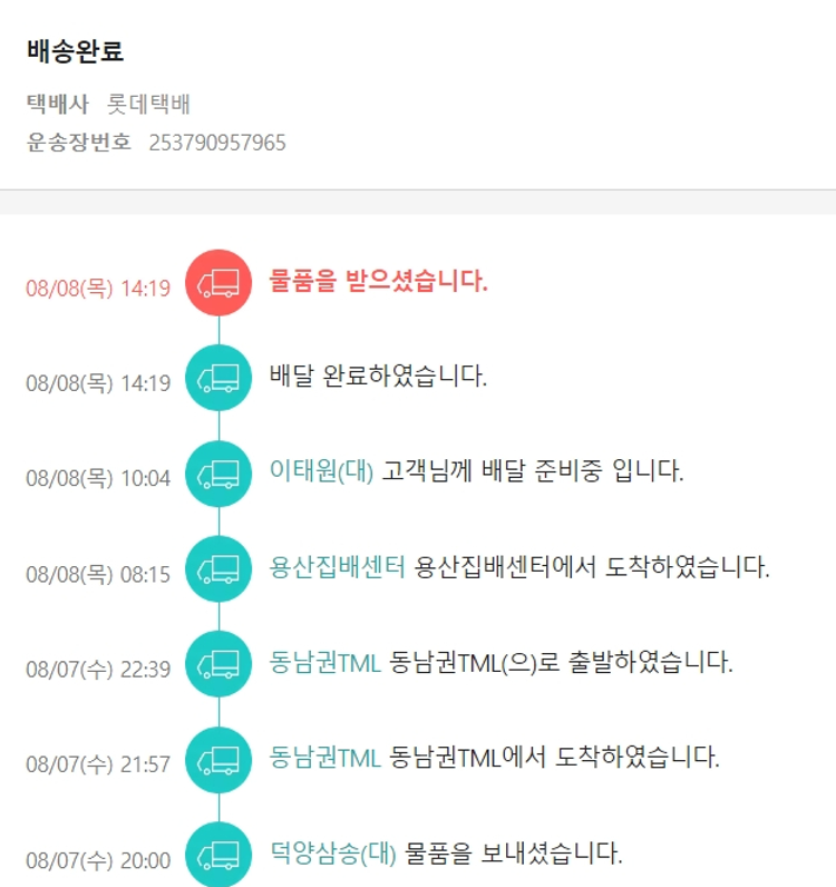 기부자님이 사용한 기부포인트 7,600원, 물품배송비 2,500원, 가격상승분 2,383원, 100원 미만 지원금 7원, 결제 수수료 9,884원, 기타 사업비는 행복나눔재단이 부담했습니다. (기부후기 발송시점에 최종 업데이트 됩니다.) 실제 쇼핑몰에서 확인되는 배송현황을 캡처한 내용입니다. 실시간 자료와는 차이가 있을 수 있습니다.