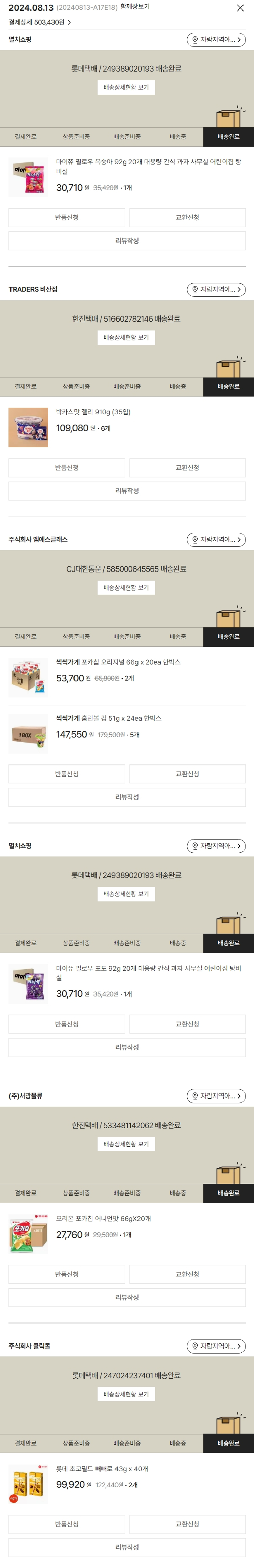 물품배송비 4,000원, 가격상승분 3,630원, 결제 수수료 10,852원, 기타 사업비는 행복나눔재단이 부담했습니다. (기부후기 발송시점에 최종 업데이트 됩니다.) 실제 쇼핑몰에서 확인되는 배송현황을 캡처한 내용입니다. 실시간 자료와는 차이가 있을 수 있습니다.