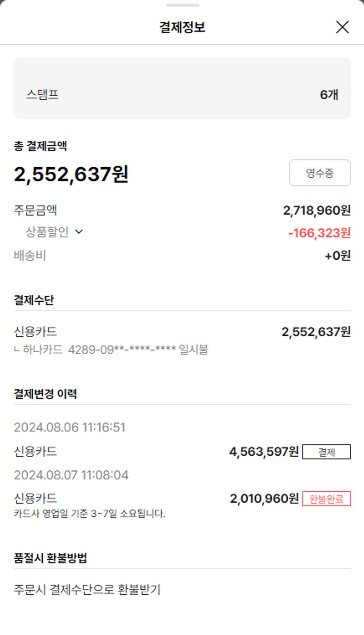 기부자님이 사용한 기부포인트 38,600원, 가격상승분 52원, 100원 미만 지원금 35원, 결제 수수료 107,649원, 기타 사업비는 행복나눔재단이 부담했습니다. (기부후기 발송시점에 최종 업데이트 됩니다.) 주문 건 중 품절 건 발생하여 2024. 08. 07. 재주문 진행했습니다. 실제 쇼핑몰에서 확인되는 배송현황을 캡처한 내용입니다. 실시간 자료와는 차이가 있을 수 있습니다.