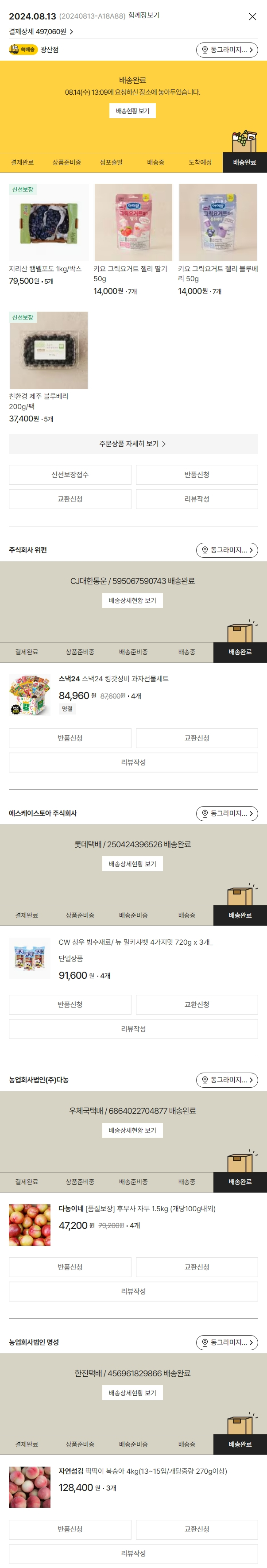 가격상승분 1,360원, 결제 수수료 11,925원, 기타 사업비는 행복나눔재단이 부담했습니다. (기부후기 발송시점에 최종 업데이트 됩니다.) 실제 쇼핑몰에서 확인되는 배송현황을 캡처한 내용입니다. 실시간 자료와는 차이가 있을 수 있습니다.