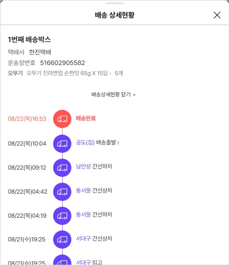기부자님이 사용한 기부포인트 3,850원, 물품배송비 7,000원, 가격상승분 750원, 100원 미만 지원금 30원, 결제 수수료 12,510원, 기타 사업비는 행복나눔재단이 부담했습니다. (기부후기 발송시점에 최종 업데이트 됩니다.) 실제 쇼핑몰에서 확인되는 배송현황을 캡처한 내용입니다. 실시간 자료와는 차이가 있을 수 있습니다.