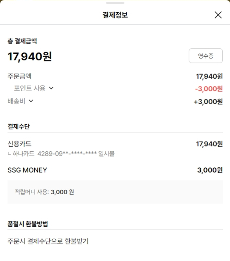 물품배송비 4,000원, 가격상승분 540원, 100원 미만 지원금 20원, SSG 머니 3,000포인트, 결제 수수료 12,650원, 기타 사업비는 행복나눔재단이 부담했습니다. (기부후기 발송시점에 최종 업데이트 됩니다.) 주문 건 중 품절 건 발생하여 2024.09.02. 재주문했습니다. 실제 쇼핑몰에서 확인되는 배송현황을 캡처한 내용입니다. 실시간 자료와는 차이가 있을 수 있습니다.