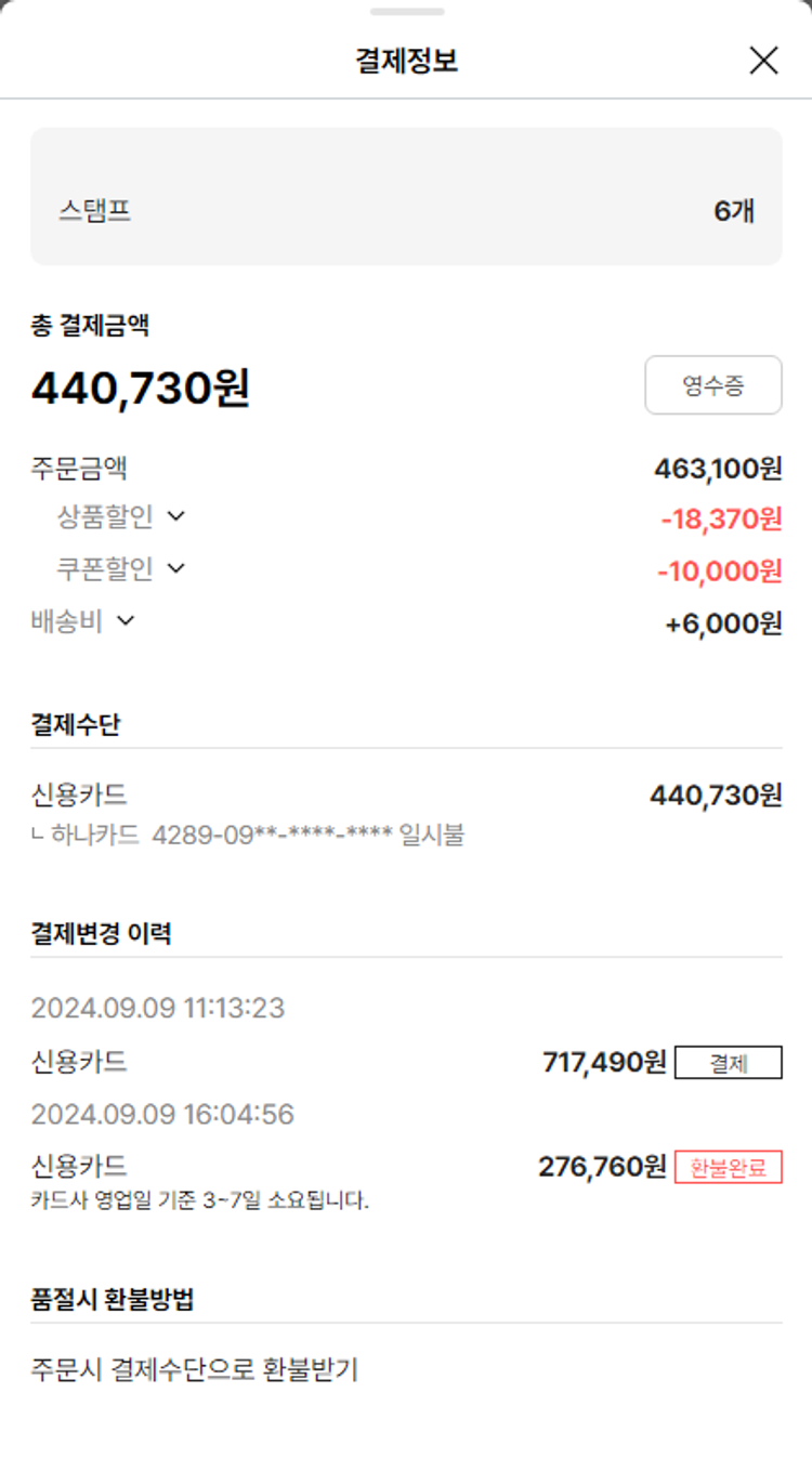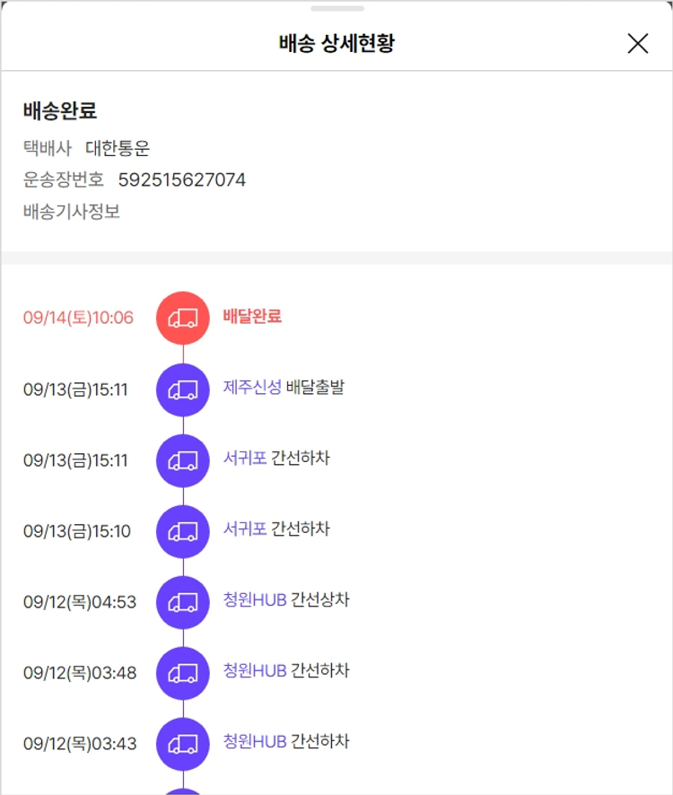 기부자님이 사용한 기부포인트 2,500원, 물품배송비 18,000원, 가격상승분 639원, 100원 미만 지원금 63원, 결제 수수료 18,446원, 기타 사업비는 행복나눔재단이 부담했습니다. (기부후기 발송시점에 최종 업데이트 됩니다.) 주문 건 중 품절 상품이 있어 2024-09-11 재주문 진행했습니다. 실제 쇼핑몰에서 확인되는 배송현황을 캡처한 내용입니다. 실시간 자료와는 차이가 있을 수 있습니다.