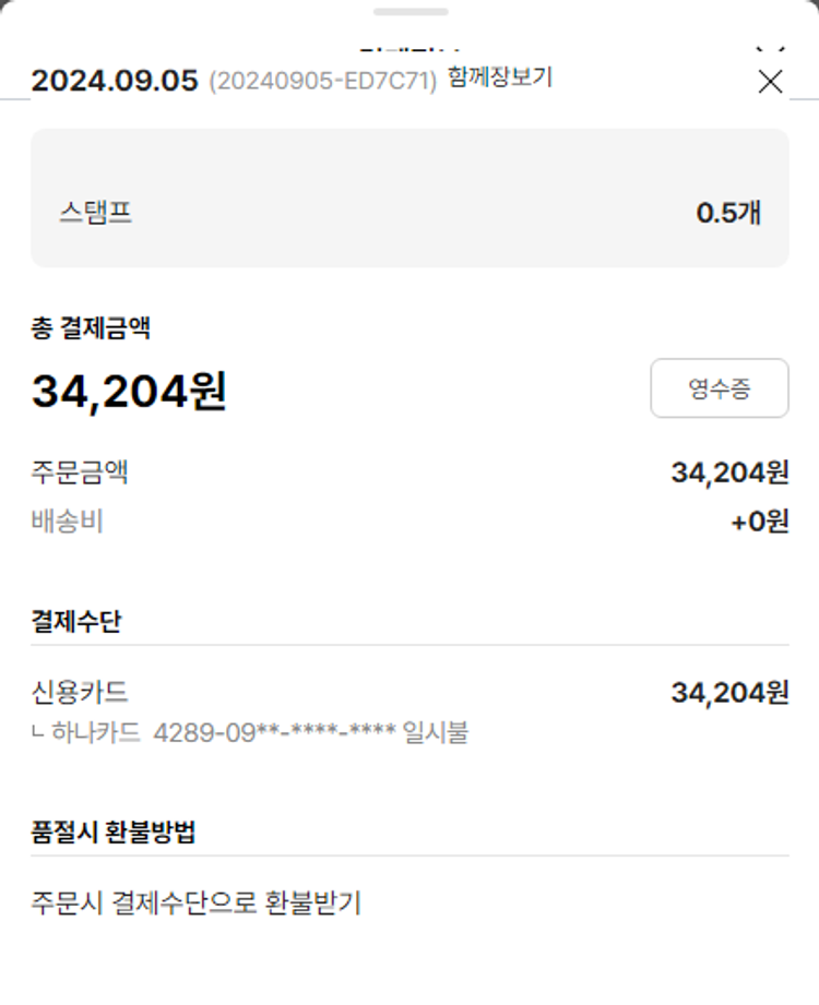 가격상승분 4원, 100원 미만 지원금 2원, 기타 사업비는 행복나눔재단이 부담했습니다. (기부후기 발송시점에 최종 업데이트 됩니다.) 주문 건 중 품절 건 발생하여 2024-09-13 재주문 진행했습니다. 실제 쇼핑몰에서 확인되는 배송현황을 캡처한 내용입니다. 실시간 자료와는 차이가 있을 수 있습니다.