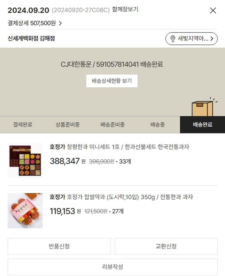 기부자님이 사용한 기부포인트 5,000원, 가격상승분 7,955원, 100원 미만 지원금 45원, 결제 수수료 14,423원, 기타 사업비는 행복나눔재단이 부담했습니다. (기부후기 발송시점에 최종 업데이트 됩니다.) 상품 일부 품절 및 가격 인상으로 인해 담당 선생님과 논의 후 수량&물품 변경 주문했습니다. 실제 쇼핑몰에서 확인되는 배송현황을 캡처한 내용입니다. 실시간 자료와는 차이가 있을 수 있습니다.