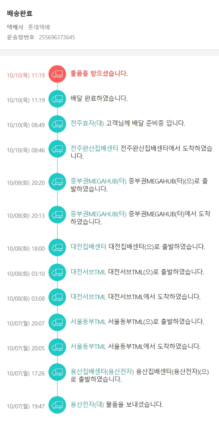 기부자님이 사용한 기부포인트 3,650원, 가격상승분 12,300원, 결제 수수료 13,064원, 기타 사업비는 행복나눔재단이 부담했습니다. (기부후기 발송시점에 최종 업데이트 됩니다.) 실제 쇼핑몰에서 확인되는 배송현황을 캡처한 내용입니다. 실시간 자료와는 차이가 있을 수 있습니다.