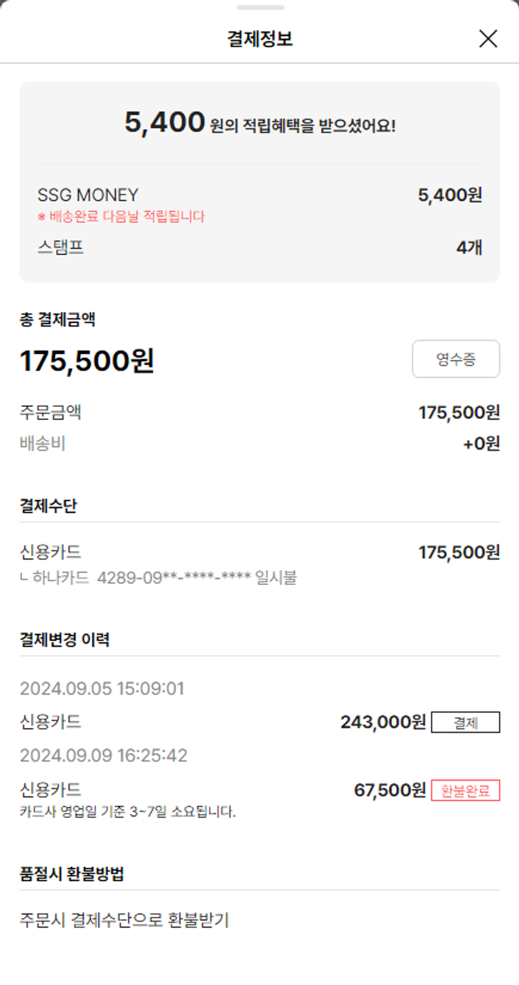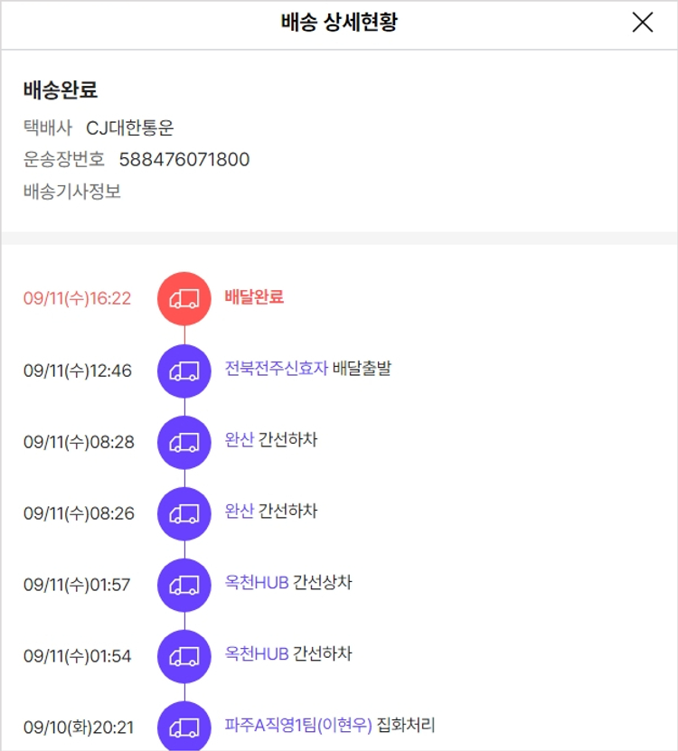 가격상승분 7,500원, 100원 미만 지원금 10원, SSG 머니 3,000포인트, 기타 사업비는 행복나눔재단이 부담했습니다. (기부후기 발송시점에 최종 업데이트 됩니다.) 주문 건 중 품절 건 발생하여 2024-09-09 재주문 진행했습니다. 실제 쇼핑몰에서 확인되는 배송현황을 캡처한 내용입니다. 실시간 자료와는 차이가 있을 수 있습니다.