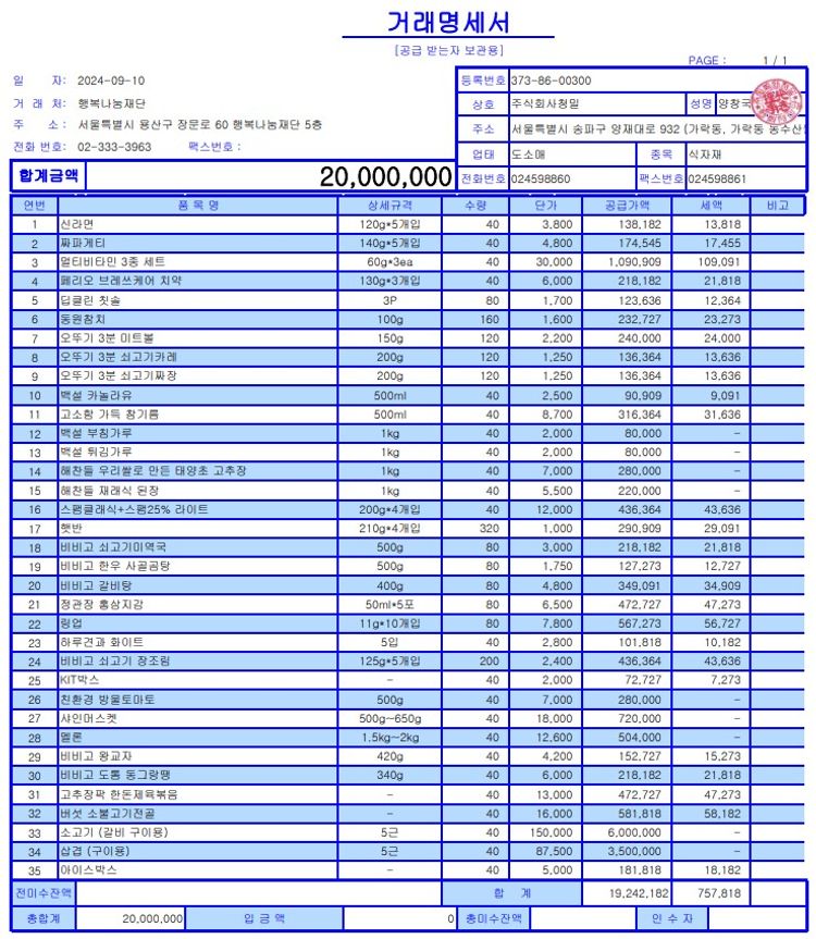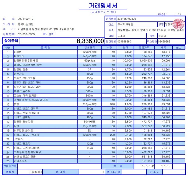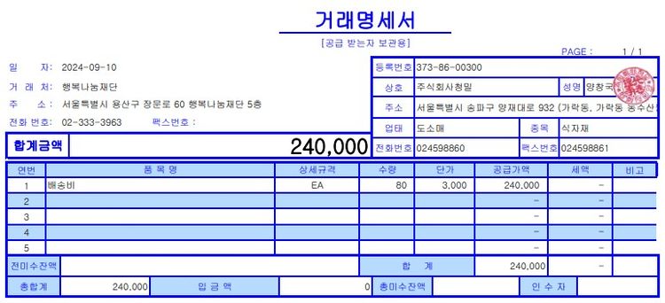 포장비40개 (개당 7,000원)