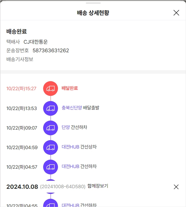 기부자님이 사용한 기부포인트 2,000원, 가격상승분 18원, 100원 미만 지원금 50원, 결제 수수료 12,520원, 기타 사업비는 행복나눔재단이 부담했습니다. (기부후기 발송시점에 최종 업데이트 됩니다.) 주문 건 중 품절 건 발생하여 2024-10-16 재주문했습니다. 실제 쇼핑몰에서 확인되는 배송현황을 캡처한 내용입니다. 실시간 자료와는 차이가 있을 수 있습니다.
