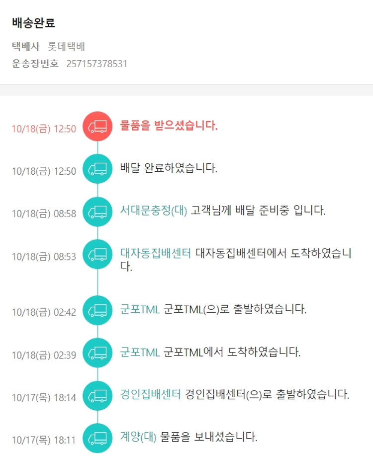 기부자님이 사용한 기부포인트 16,350원, 물품배송비 6,000원, 가격상승분 3,373원, 100원 미만 지원금 68원, 결제 수수료 22,001원, 기타 사업비는 행복나눔재단이 부담했습니다. (기부후기 발송시점에 최종 업데이트 됩니다.) 실제 쇼핑몰에서 확인되는 배송현황을 캡처한 내용입니다. 실시간 자료와는 차이가 있을 수 있습니다.