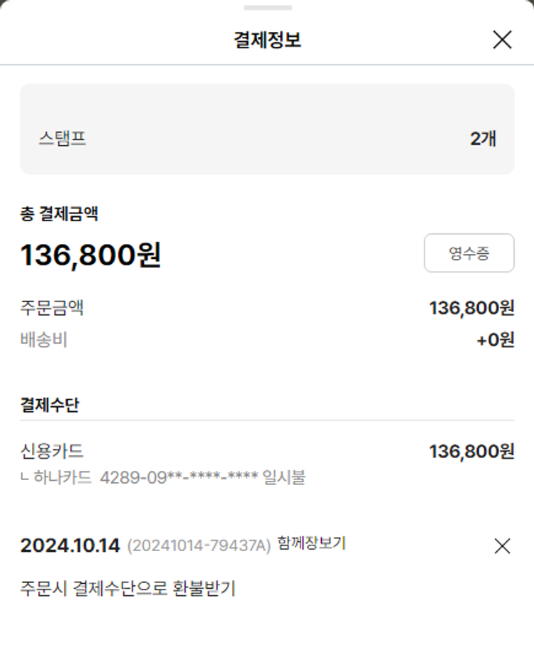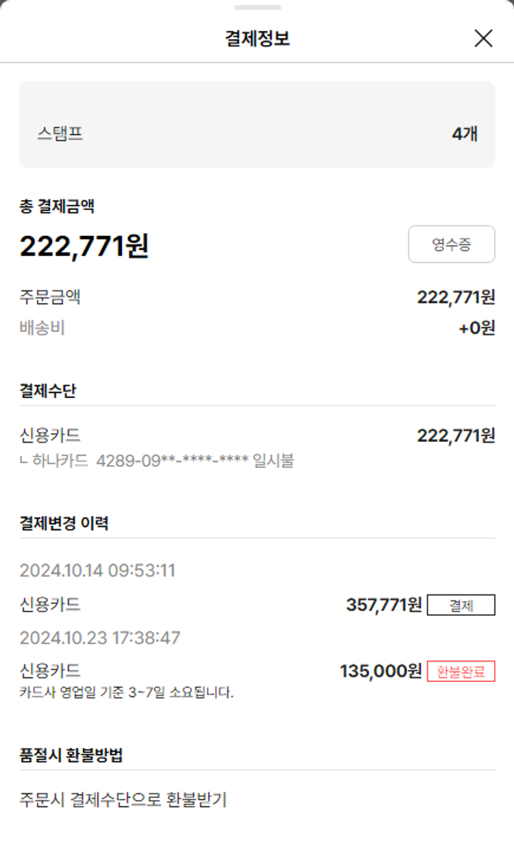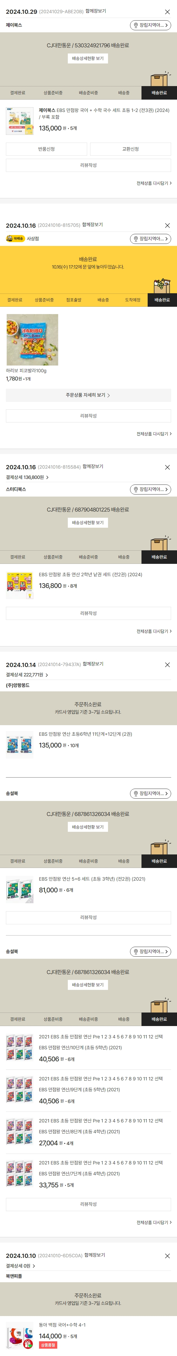 주문 건 중 품절 건 발생하여 2024-10-29 재주문했습니다.