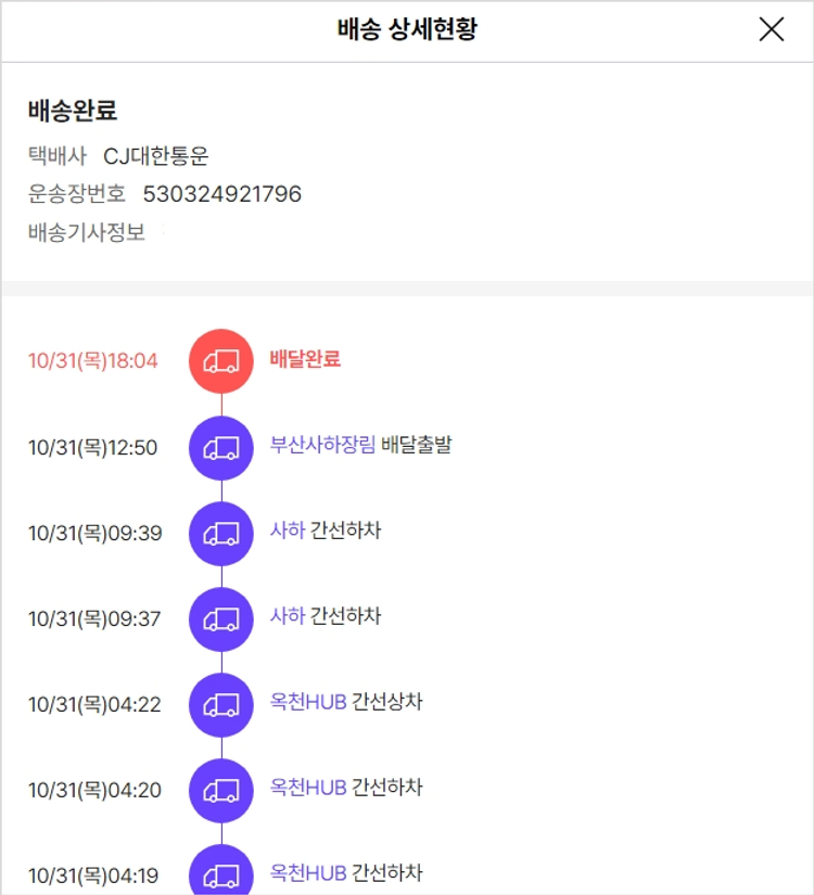 실제 쇼핑몰에서 확인되는 배송현황을 캡처한 내용입니다. 실시간 자료와는 차이가 있을 수 있습니다.
