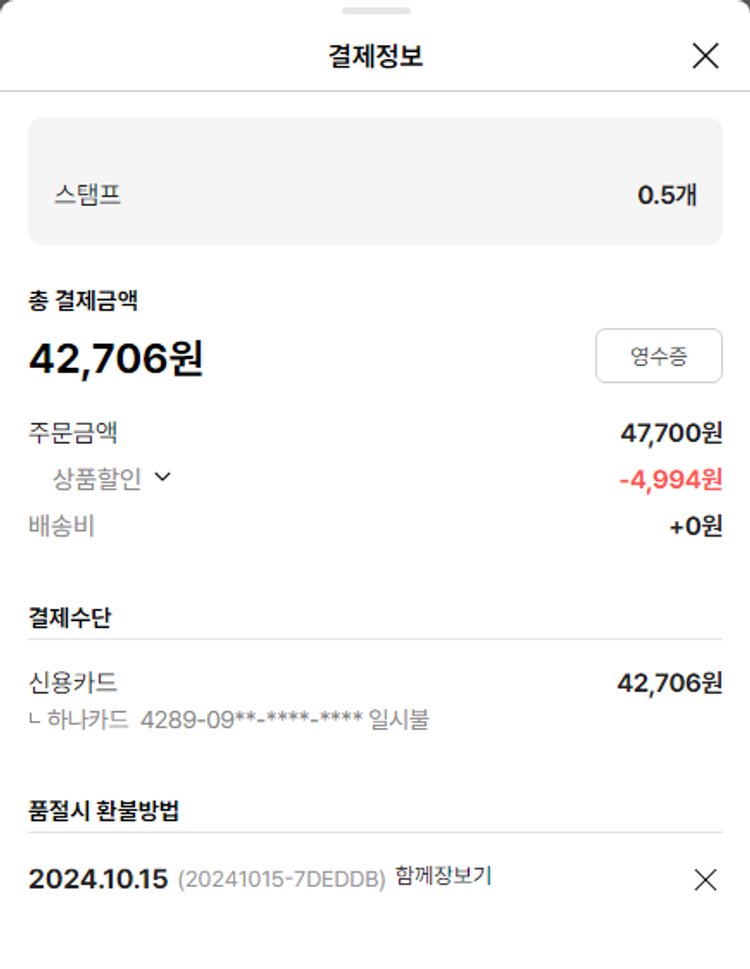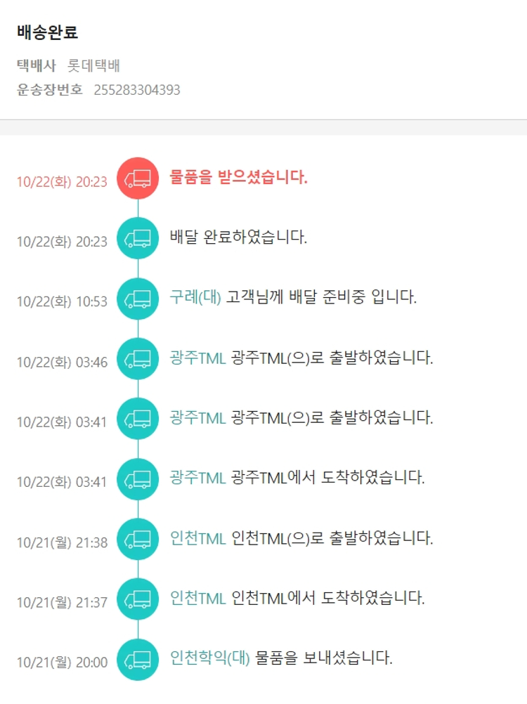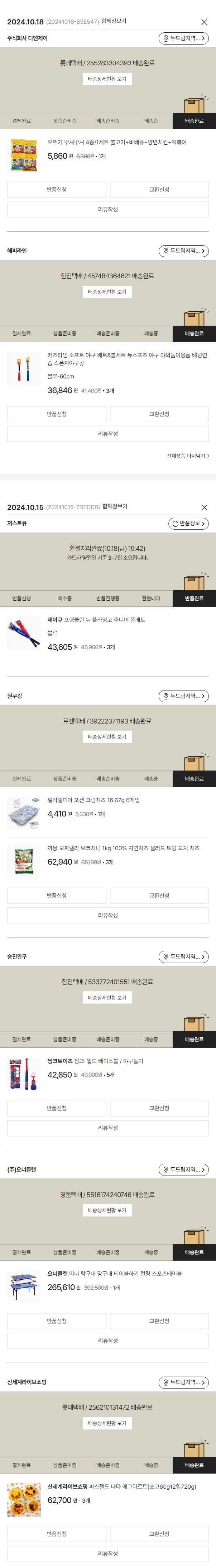 물품배송비 14,500원, 가격상승분 301원, 100원 미만 지원금 15원, 결제 수수료 12,958원, 기타 사업비는 행복나눔재단이 부담했습니다. (기부후기 발송시점에 최종 업데이트 됩니다.) 주문 건 중 품절 건 발생하여 2024-10-18 재주문했습니다. 실제 쇼핑몰에서 확인되는 배송현황을 캡처한 내용입니다. 실시간 자료와는 차이가 있을 수 있습니다.