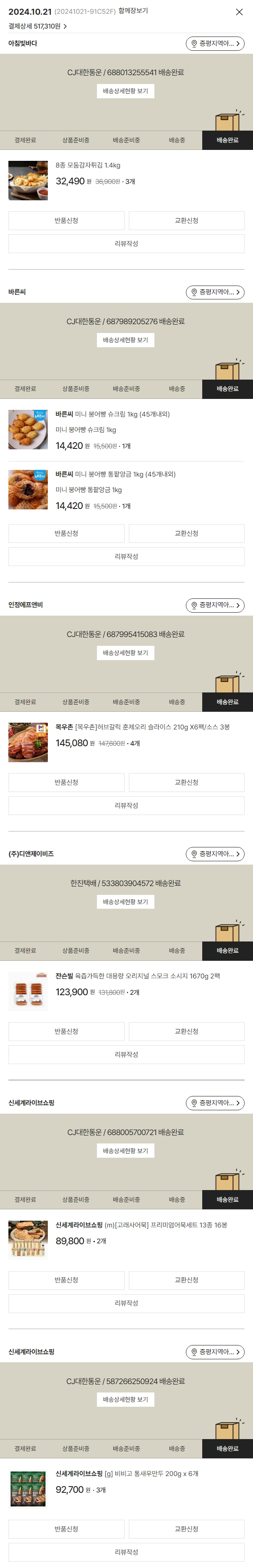 기부자님이 사용한 기부포인트 20,700원, 물품배송비 4,500원, 가격상승분 19,610원, 결제 수수료 12,240원, 기타 사업비는 행복나눔재단이 부담했습니다. (기부후기 발송시점에 최종 업데이트 됩니다.) 실제 쇼핑몰에서 확인되는 배송현황을 캡처한 내용입니다. 실시간 자료와는 차이가 있을 수 있습니다.