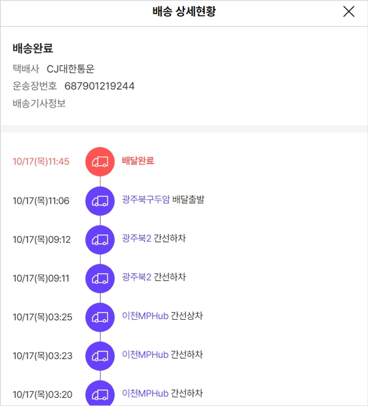 기부자님이 사용한 기부포인트 4,150원, 물품배송비 3,000원, 가격상승분 1,582원, 100원 미만 지원금 80원, 결제 수수료 13,151원, 기타 사업비는 행복나눔재단이 부담했습니다. (기부후기 발송시점에 최종 업데이트 됩니다.) 주문 건 중 품절 건 발생하여 2024-10-15 재주문했습니다. 실제 쇼핑몰에서 확인되는 배송현황을 캡처한 내용입니다. 실시간 자료와는 차이가 있을 수 있습니다.