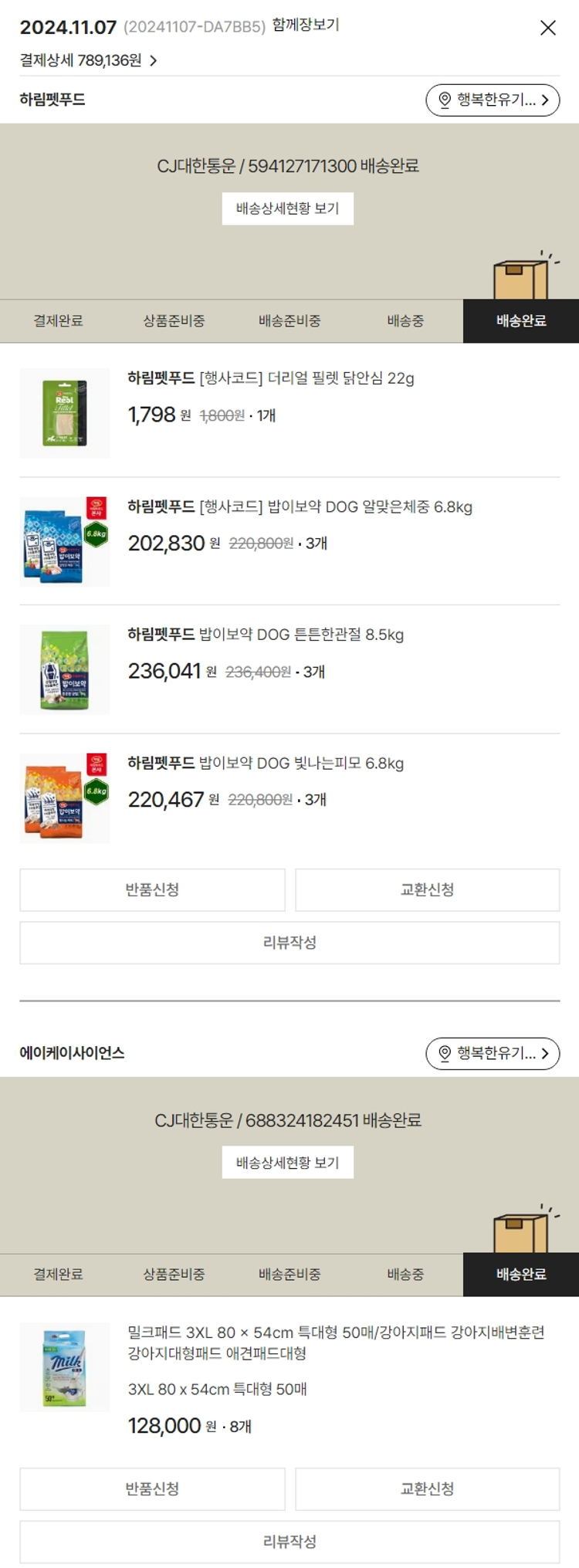 기부자님이 사용한 기부포인트 58,000원, 가격상승분 256원, 100원 미만 지원금 80원, 결제 수수료 20,334원, 기타 사업비는 행복나눔재단이 부담했습니다. (기부후기 발송시점에 최종 업데이트 됩니다.) 실제 쇼핑몰에서 확인되는 배송현황을 캡처한 내용입니다. 실시간 자료와는 차이가 있을 수 있습니다.