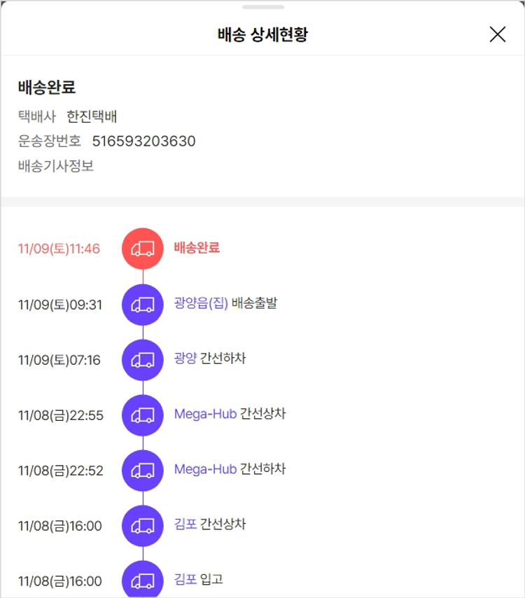 기부자님이 사용한 기부포인트 8,300원, 가격상승분 6,430원, 100원 미만 지원금 10원, 결제 수수료 13,118원, 기타 사업비는 행복나눔재단이 부담했습니다. (기부후기 발송시점에 최종 업데이트 됩니다.) 실제 쇼핑몰에서 확인되는 배송현황을 캡처한 내용입니다. 실시간 자료와는 차이가 있을 수 있습니다.