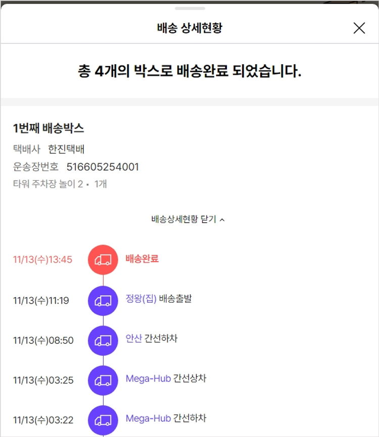 기부자님이 사용한 기부포인트 10,200원, 가격상승분 540원, 100원 미만 지원금 60원, 결제 수수료 12,754원, 기타 사업비는 행복나눔재단이 부담했습니다. (기부후기 발송시점에 최종 업데이트 됩니다.) 실제 쇼핑몰에서 확인되는 배송현황을 캡처한 내용입니다. 실시간 자료와는 차이가 있을 수 있습니다.