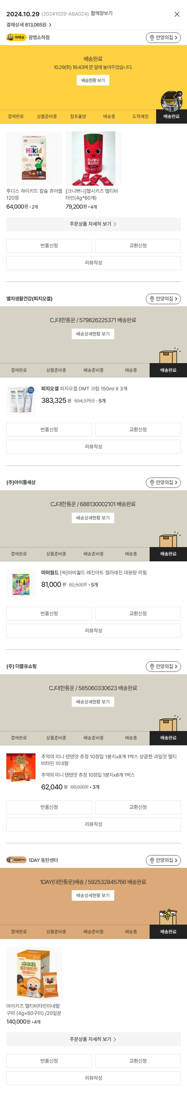 기부자님이 사용한 기부포인트 69,600원, 물품배송비 3,500원, 가격상승분 13,270원, 100원 미만 지원금 95원, 결제 수수료 21,873원, 기타 사업비는 행복나눔재단이 부담했습니다. (기부후기 발송시점에 최종 업데이트 됩니다.) 실제 쇼핑몰에서 확인되는 배송현황을 캡처한 내용입니다. 실시간 자료와는 차이가 있을 수 있습니다.