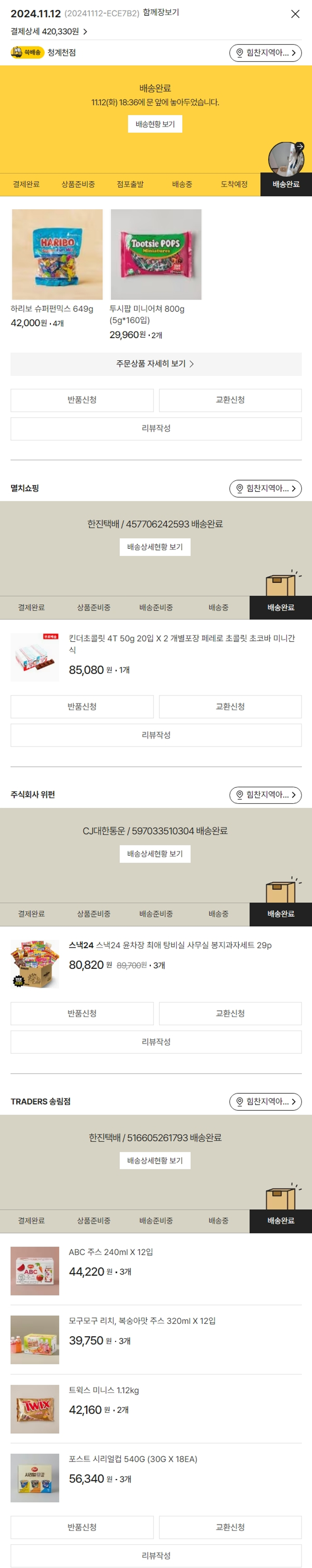 가격상승분 6,584원, 100원 미만 지원금 46원, 결제 수수료 11,456원, 기타 사업비는 행복나눔재단이 부담했습니다. (기부후기 발송시점에 최종 업데이트 됩니다.) 실제 쇼핑몰에서 확인되는 배송현황을 캡처한 내용입니다. 실시간 자료와는 차이가 있을 수 있습니다.