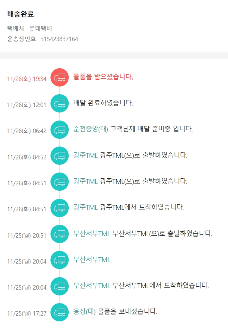 기부자님이 사용한 기부포인트 38,000원, 물품배송비 6,000원, 가격상승분 1,397원, 100원 미만 지원금 43원, 결제 수수료 15,042원, 기타 사업비는 행복나눔재단이 부담했습니다. (기부후기 발송시점에 최종 업데이트 됩니다.) 실제 쇼핑몰에서 확인되는 배송현황을 캡처한 내용입니다. 실시간 자료와는 차이가 있을 수 있습니다.